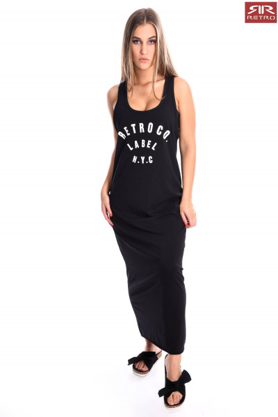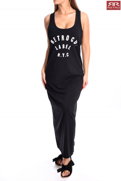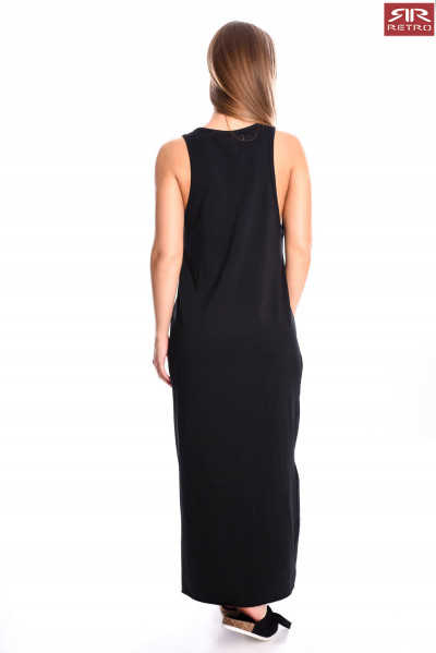 RetroJeans női maxi ruha (Chlarissa), fekete színben, elején filmnyomott márkajelzéssel a tavaszi/nyári Retro Jeans kollekcióból.