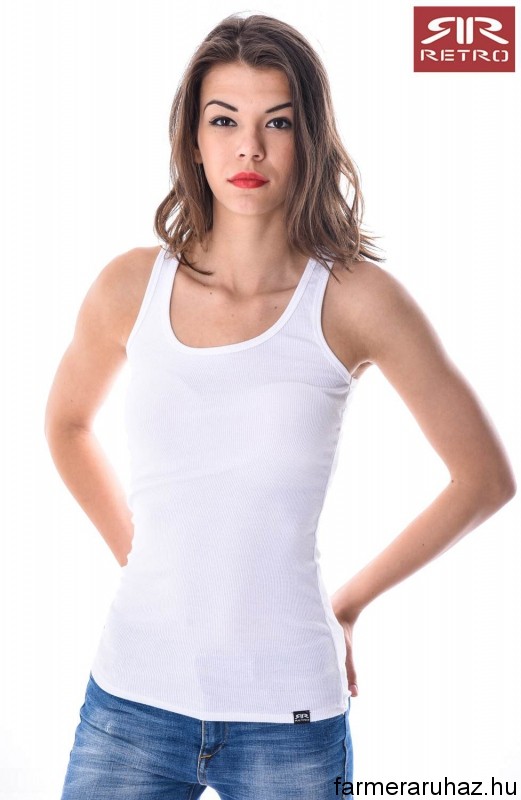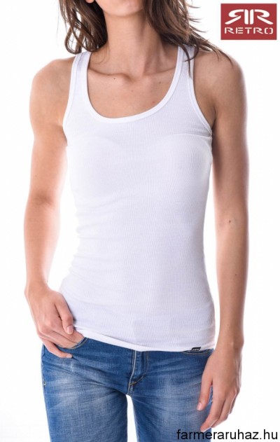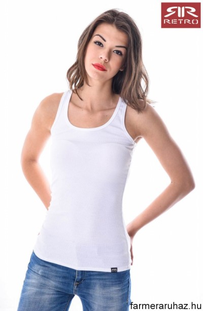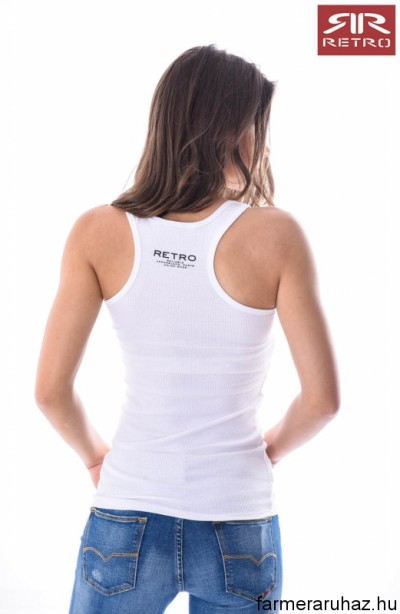 RetroJeans női trikó (Flow B Tank Top), fehér (White) színben, bordázott anyagból, alján rávarrt, hátán filmnyomott márkajelzéssel a 2018. tavaszi Retro Jeans kollekcióból.