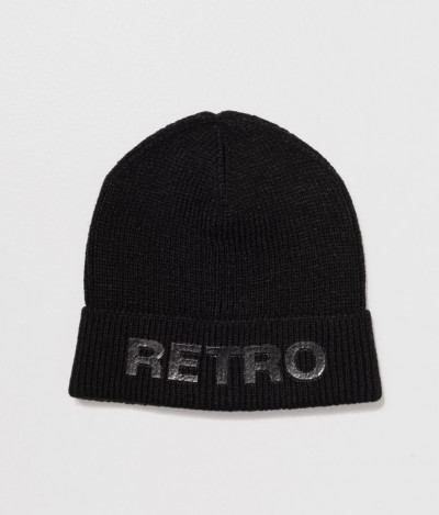 RetroJeans férfi kötött sapka (Scotie Hat), fekete (Black) színben, elején nyomott márkajelzéssel az őszi/téli Retro Jeans kollekcióból.