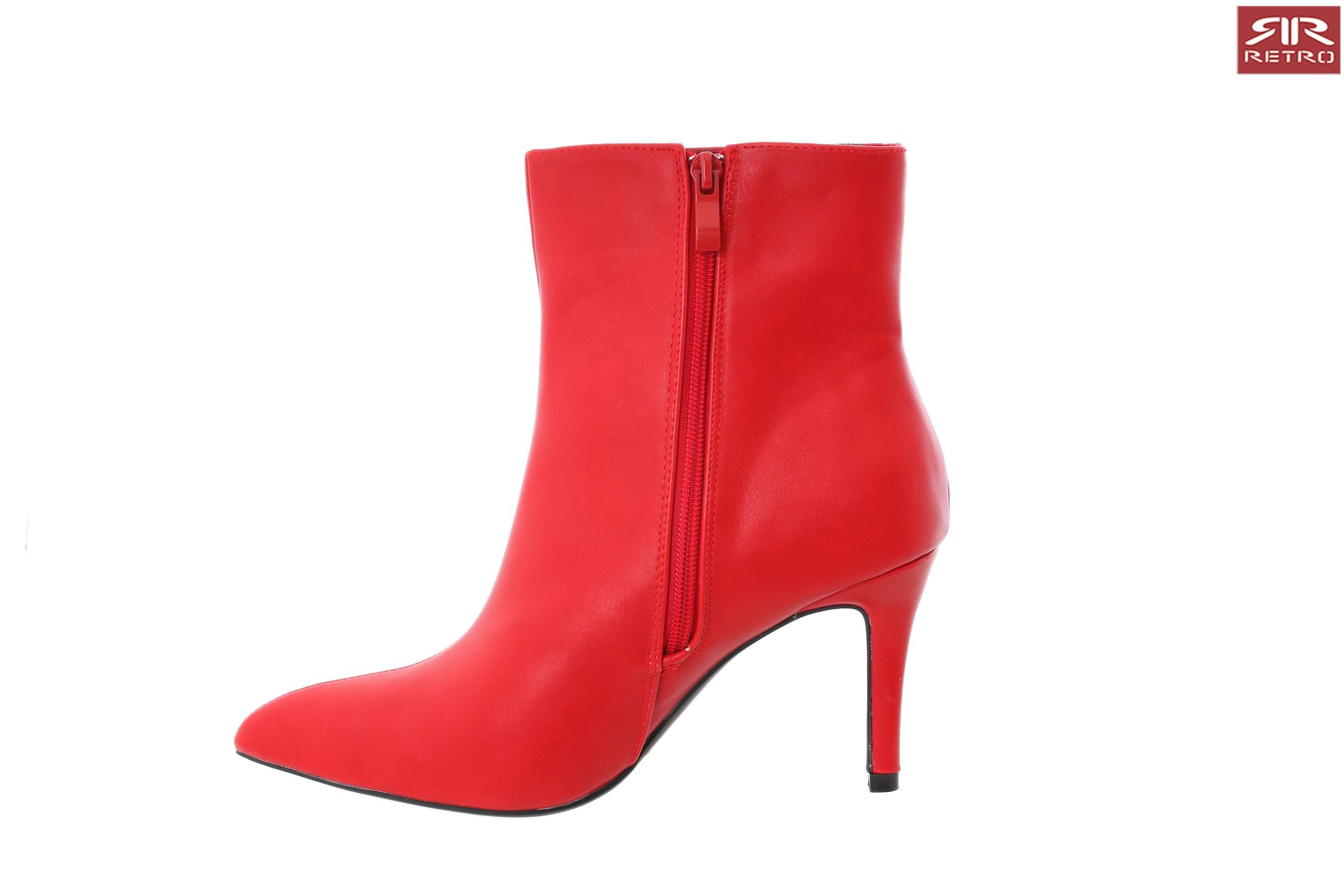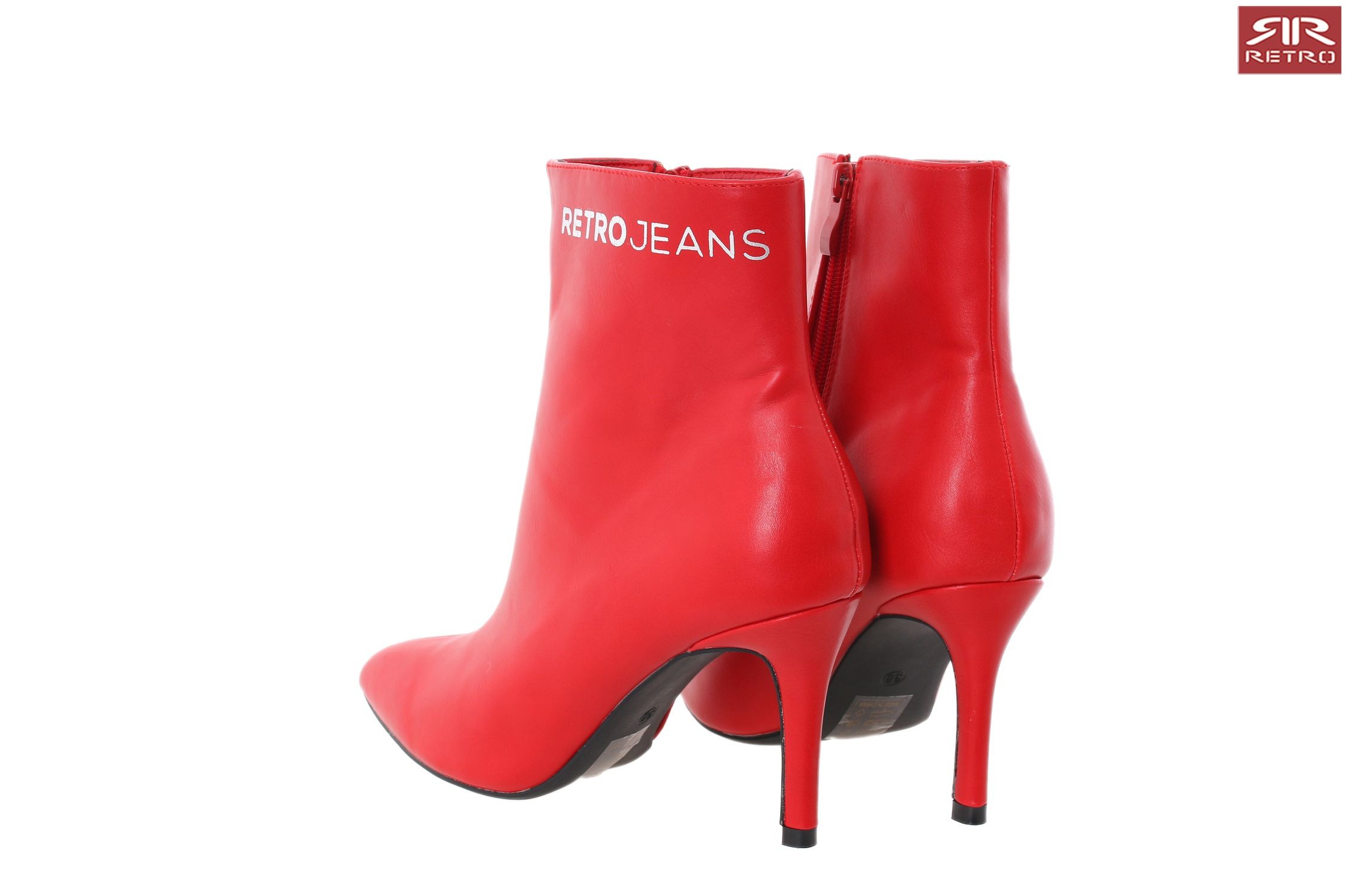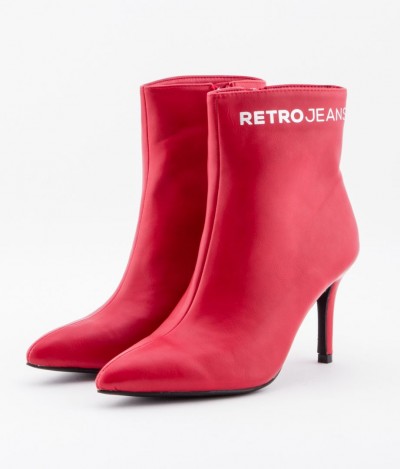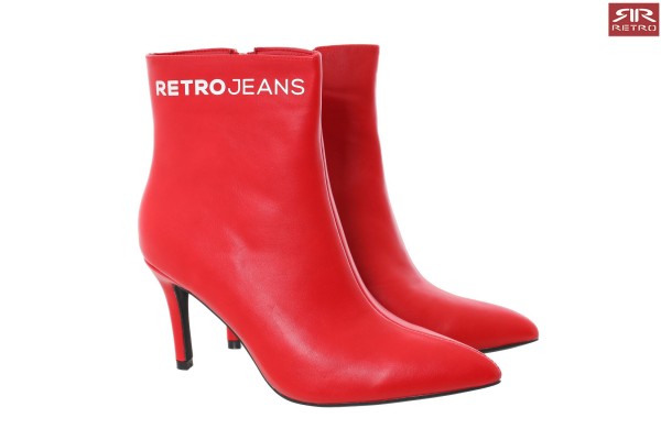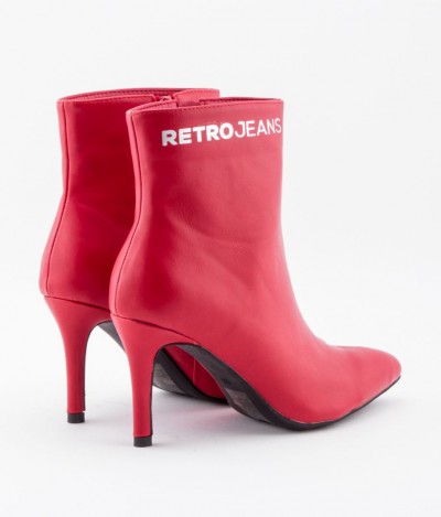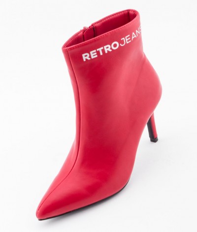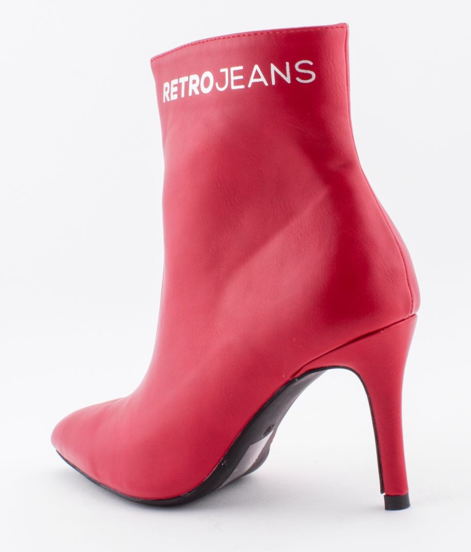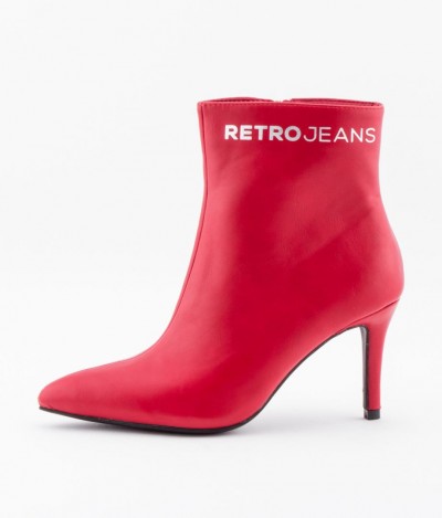 Retro Jeans - Abril Boots – magassarkú bokacsizma, piros (Red) színben, szárán filmnyomott márkajelzéssel az őszi/téli RetroShoes kollekcióból.