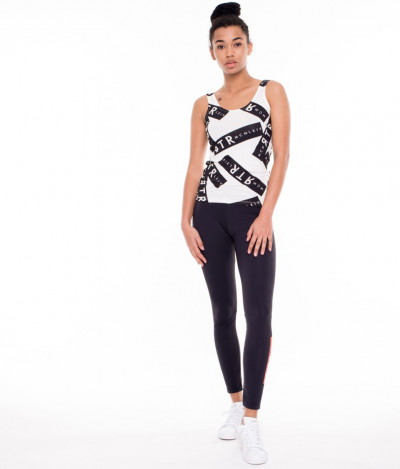 RetroJeans női leggings (Tia), fekete színben, gumis derékkal, szárán filmnyomott felirattal és márkajelzéssel a tavaszi/őszi Retro Jeans kollekcióból.