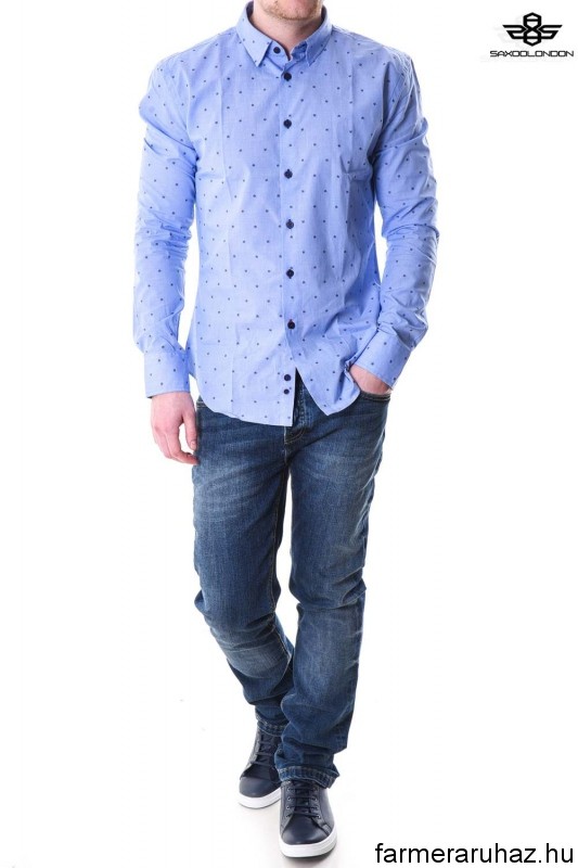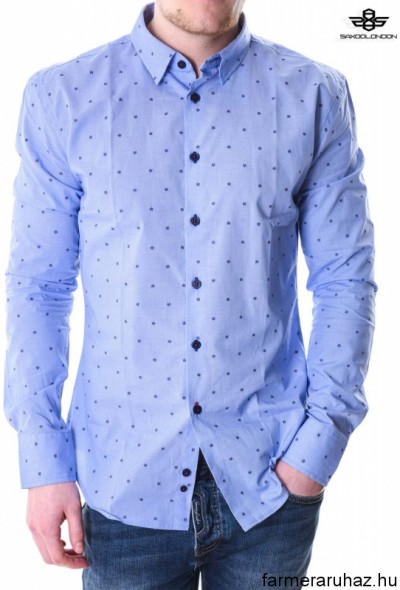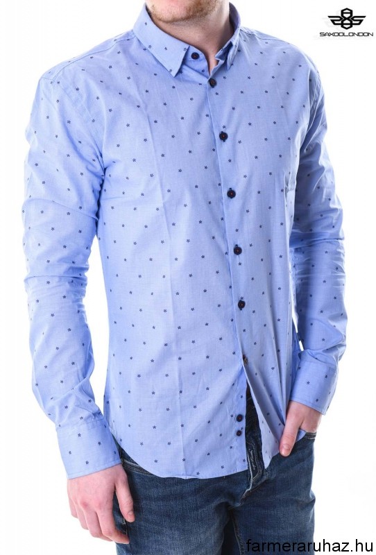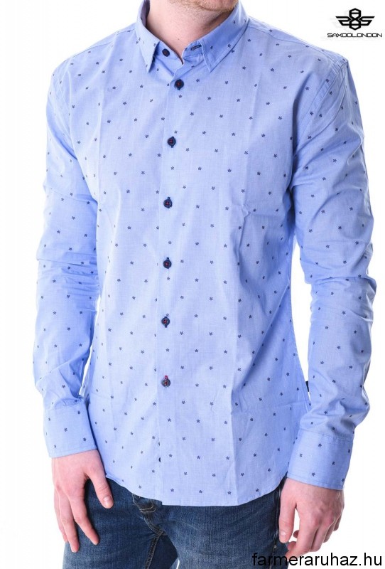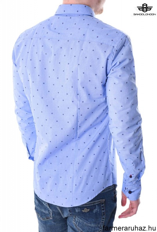SaxooLondon (Bossa Bamaco) férfi hosszú ujjú ing, világoskék színű, apró virág mintás, karcsúsított fazonban, a 2018 tavaszi SaxooLondon kollekcióból.